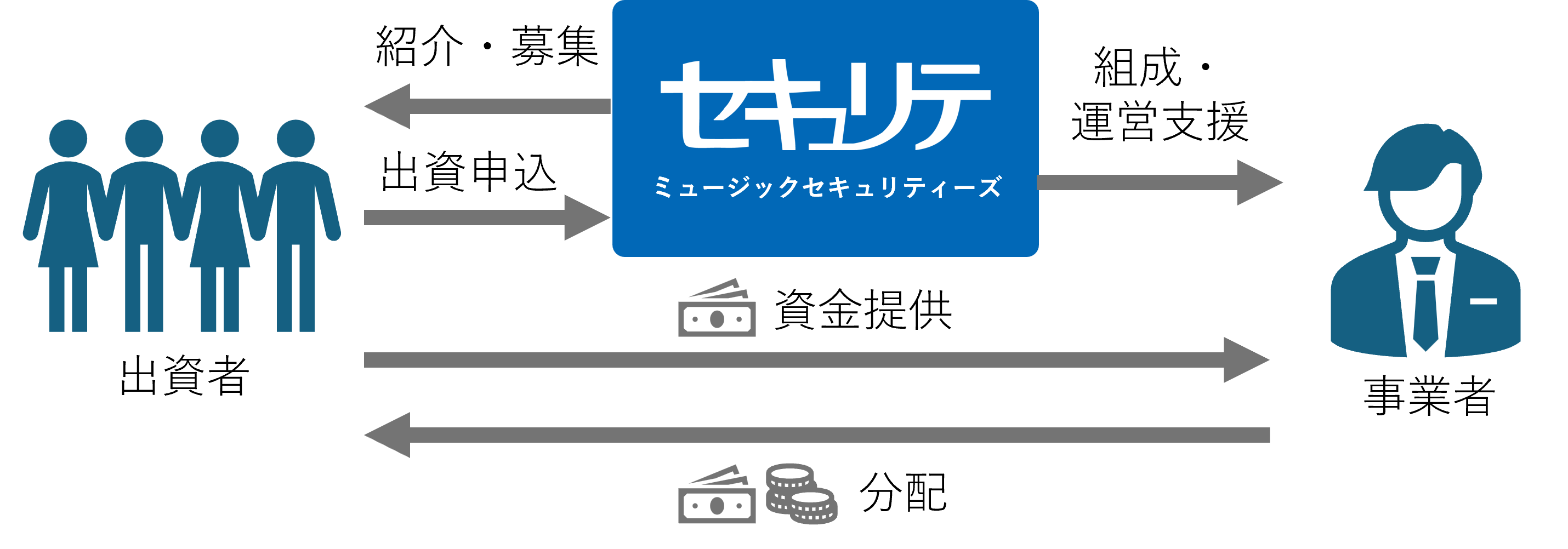 出資者は、対象の事業に直接出資を行います。そして、出資した事業の成果に応じて、分配金を受け取る仕組みです。