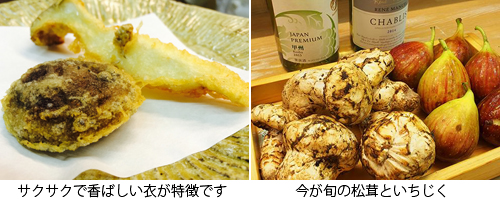 ![]() | 【夜のメニュー】 季節の天ぷらのコース ¥3,500(税込み) 「まつたけ」¥490(税込み) 「いちじくゴルゴンゾーラ」¥490(税込み) 「肉厚しいたけ」¥390(税込み) 「きのこ天盛り」¥590(税込み) 「活ふぐ」¥490(税込み) お刺身「戻カツオ」¥490(税込み) 蛤蒸し-白ワインor酒 ¥490(税込み) 焼き銀杏 ¥390(税込み) |