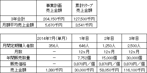 製品販売は2013年4月以降、実績を積み上げてきています。2014年3月末時点の定期購入者数は218人、2014年7月現在356人まで増えてきました。定期購入者の94%がリピーターとなっており、毎月定期購入者数は増加しています。なお、今までは販売促進活動を特に行っておらず、また、自社のネット販売のみで顧客を獲得してきました。今後は、出資金を用いて販促活動に力を入れることで定期購入者数の増加に努めます。