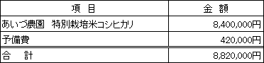 | 本匿名組合契約名称 | あいづ農園 特別栽培米コシヒカリファンド | |||