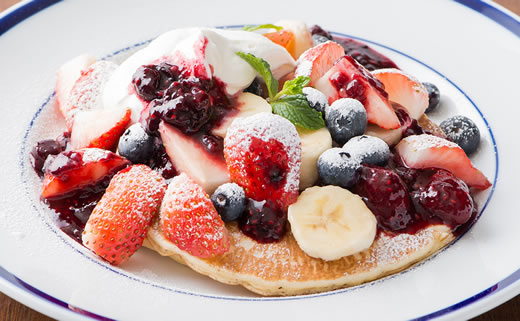 約70年受け継がれてきた秘伝のソース「ハウピアソース(ハウピアとはハワイ語でココナッツの意味です)」をたっぷりかけたオリジナルパンケーキなどをお楽しみ頂けます。