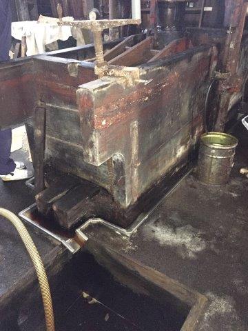 こちらがコトヨ醤油の美味しい醤油が生みだす160年以上 使い続けている杉桶です。