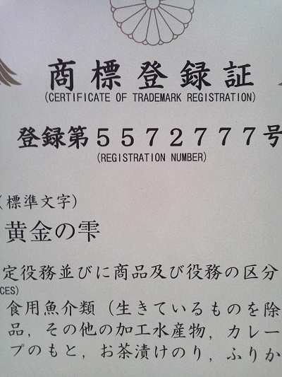 ウニめかぶ、塩ウニの黄金の雫が商標登録証がとれました。
