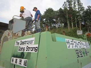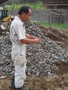 大きな塊だったコンクリート片をあっというまに砕きます。後半の写真特集で、砕くまでの工程をご紹介します。馬場中山地区HP20110904