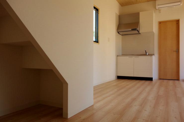 木目調の落ち着いた雰囲気の部屋にはキッチンやトイレ・洗面台、バスルームも完備されており、まさにくつろげるプライベート空間が広がっておりました。