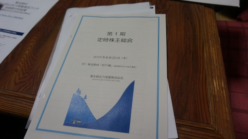 8月20日に東吉野村にて東吉野水力発電株式会社の第1期定時株主総会が行われました。