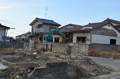 (鮮魚店から数百メートル海側の様子です(取り壊しをしている建物がある一方、修理を進めていた建物も))