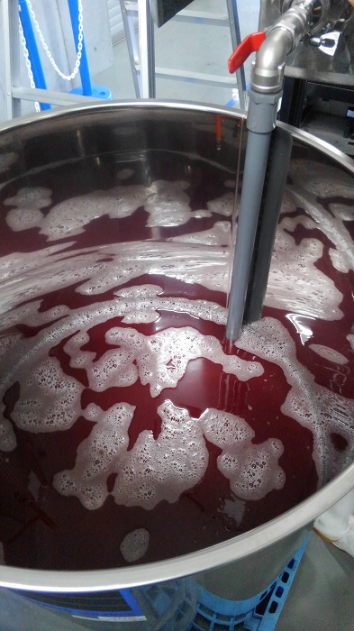 さて、先日は、2016年に収穫したブドウを仕込んでいる、東御市にあるアルカンヴィーニュに伺いました。ここは、私が2015年に一期生として栽培と醸造を学んだ学校であり、醸造設備を備えたワイナリーでもあります。この学校で学んだ方以外でも、ここでワインを仕込むことができ、2016年ヴィンテージは多くの農家の方がここを利用しています。